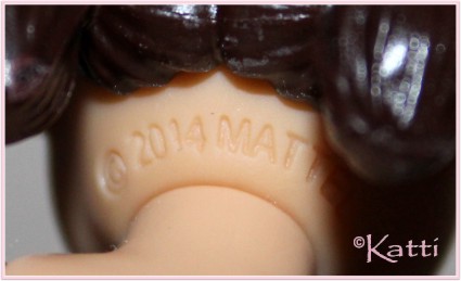 opposed to the others that point outwards. To that note, her sculpt is marked ©2014, while the older dolls are ©2015. I haven't seen this sculpt