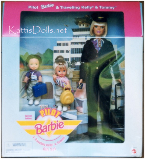 Pilot Barbie & Traveling Kelly & Tommy Gift Set ©1999 Sam's in the US had this huge gift set with Pilot Barbie along with her traveling companions Tommy and Kelly boxed together - right next to her big blue airplane in a separate box that was glued together to one separate set. I bought this set off eBay once and had the seller separate the boxes and just send me the box with the dolls. The glue resulted in a ripped box side, but still "intact" and the dolls untouched. I haven't come across my box in my work of retaking all photos but when I do, fresh photos will be uploaded, here and in the blog. Pilot Barbie is the