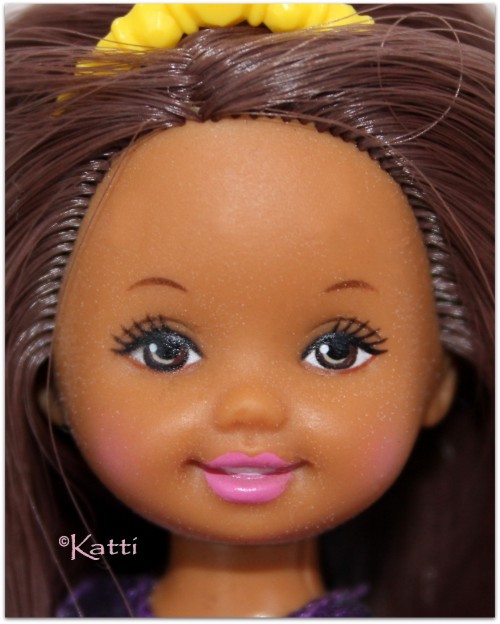 Mermaid Fun Kelly/Shelly, ©2001 Kelly is playing in water again, dressed like a mermaid. Well. Not exactly, but her dress is sewn to mimik a mermaid tail with a purple top and an aqua/blue ballon skirt. What is special about these dolls, is that their hair changes color in warmth. Both go pink, more or less, all over. The box includes a flower island with a flower shaped shower which can give Kelly a real shower. Warm water and her hair turns pink. More and detailed photos in my (Swedish) blog. © Dolls and photos all belong to me, unless otherwise noted.