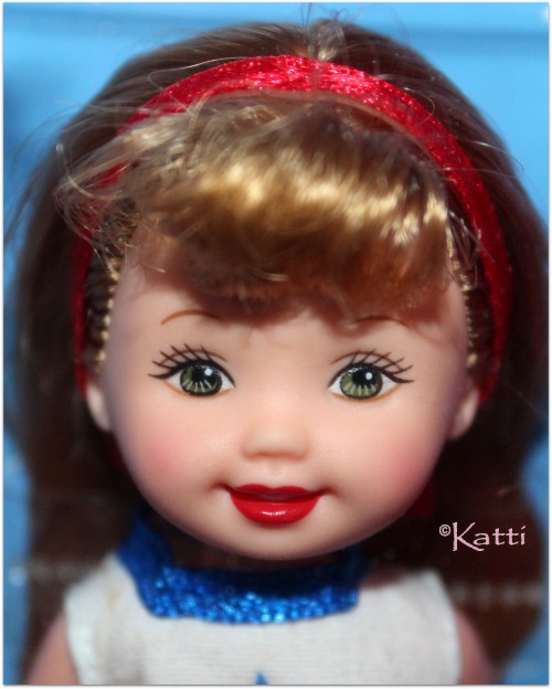 Kelly: Red, White & Cute ©2003 A quartet of dolls sold exclusively at Wal*Mart, Red, White & Cute Kelly and friends, Belinda, Liana and Deidre, all dressed up to celebrate 4th of July in their best red/white/and blues. There's stars and stripes, denim and cotton and each kid carries an animal with a matching bow/kerchief. More and detailed photos in my (Swedish) blog. © Dolls and photos all belong to me, unless otherwise noted.