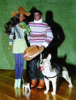 this look and the 'Stetsons'. The dog is a Mattel-figure with no known name, we call him Rocky and the cat lives in the stable. |