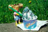 A trip downtown the day before leaving. Elin, Erik and Lisa (kid next door) are having an icecream. Can you see Linda? She licked on my cup - to the right. |