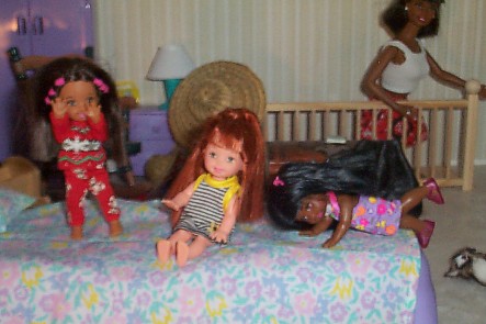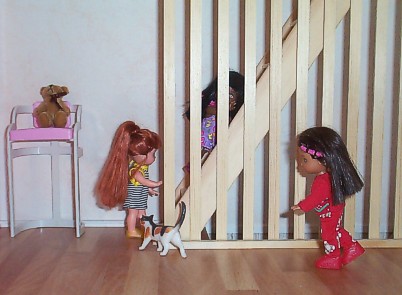 Lisa put Elvis up in the dollhouse but realized he was a little too big for it and tossed him out to play with Polly instead. | ![]() |