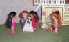 Mickey and Debbie puts everything in order for the game. 5 Knights (or KUBBs) on each side and the King in the middle. |