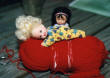 Elin's Shelly jumped up on a red ball of yarn that Kat is making a dress from. "It's so warm and cozy!" |