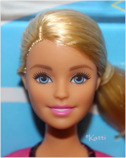 Barbie Gymnasctics Coach ©2018 One of Barbie's 200+ careers is to be a gymnastics coach and here she is teaching a girl to do some tricks on a beam. Barbie is a blonde Millie / AA Asha in an outfit with a black top and purple shorts and a 3/4 sleeved pink jacket. She is barefoot. The girl has a molded gymnastics suit in purple with pink details. The Caucasian girl has reddish hair with two molded top buns and green eyes. The AA girl has black hair and brown eyes. More and detailed photos in my (Swedish) blog. © Dolls and photos all belong to me, unless otherwise noted. - |