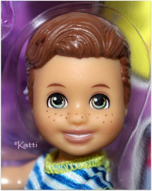 brownet and freckled boy is playing with a his own kitchen and the last set