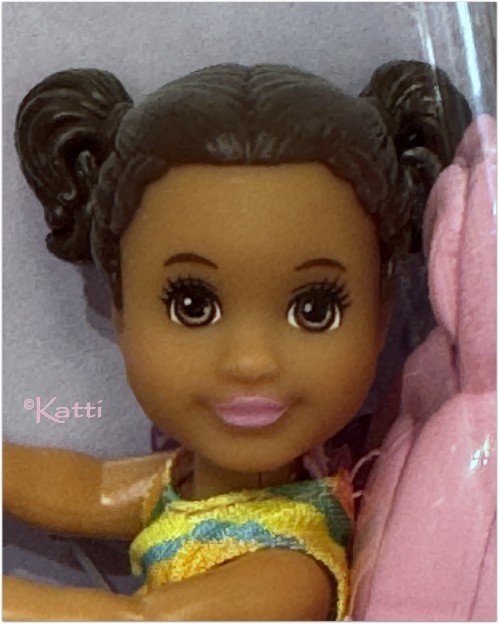 ©2022/©2023. Barbie is working one of her 250+ careers, here as a dentist to a tiny patient girl. Barbie is a blonde Millie with middle parted straight hair and blue eyes or a sun kissed brunette Neysa with brown eyes. She is wearing a plaid dress in blue/turqouise with yellow flower prints under a white doctors robe. White shoes on the flat feet. Barbie also has a pair of baby pink glasses that she doesn't seem to need on regular basis, as they are placed with the dentist accessories. The patient is a girl with poufy pigtails and closed mouth. Mille's patient is a light skinned AA girl with brown hair and brown eyes and Neysa's patient has bright yellow blonde hair and blue eyes. They wear a striped dress in the colors of the rainbow and purple toddler boots. More and detailed photos in my (Swedish) blog. © Dolls and photos of blonde set all belong to me, the rest are picclick/Mattel. - |