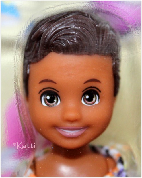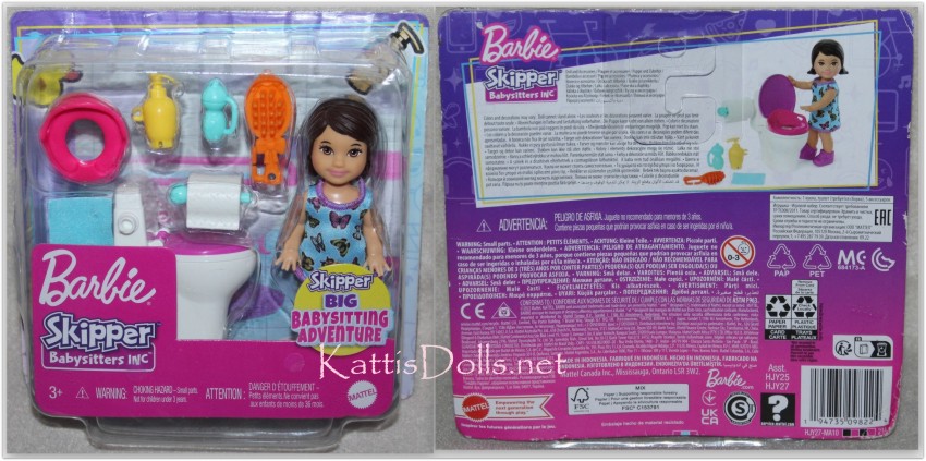 back of her head. She is "Potty Training" and comes with toilet accessories.
