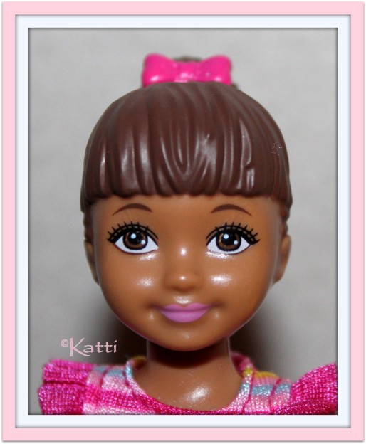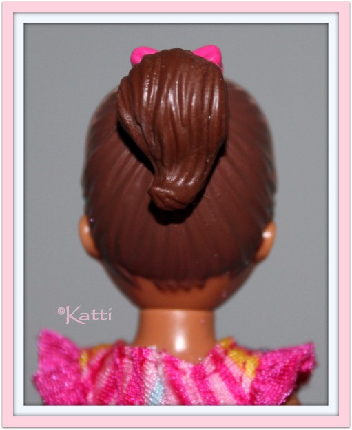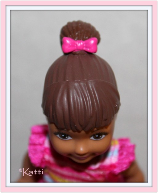 had a pink bow, all molded and painted. The set came in Caucasian and AA.