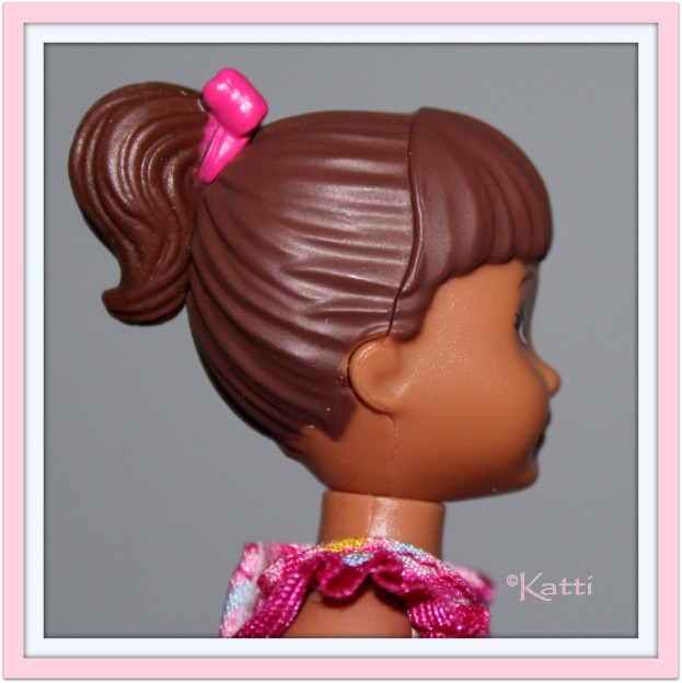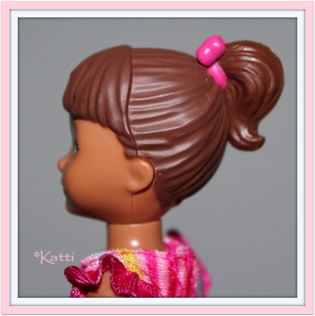 with molded hair. The first kid had a high ponytail and bangs with a hard