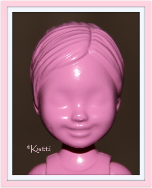 The first head for the girls has a swirl ponytail type of hairdo, with the front hair slicked to the head and the rest "gathered up" to the hole in the back of the head, where to put a loose ponytail. Color Reveal Chelsea I, 'slick'