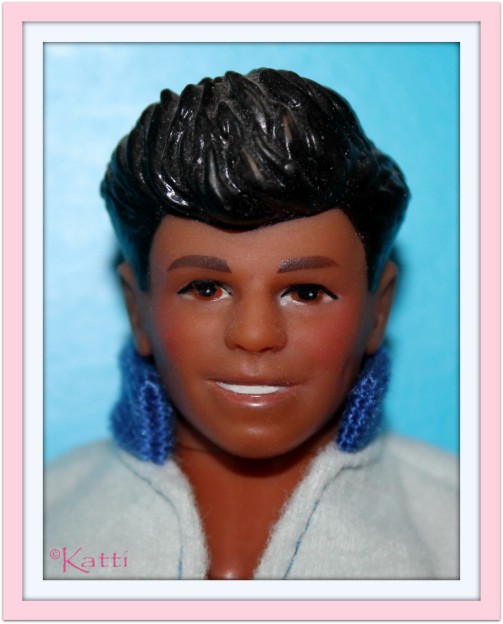 Olimpico Ken In time for the 1988 Olympic Summer Games, this guy was sold in Venezuela. He was made by Rotoplast and sported the Derek sculpt. Olimpico Ken had dark skin, and could pass for AA or Hispanic. He has brown eyes and all black hair. The overalls came in different color schemes.